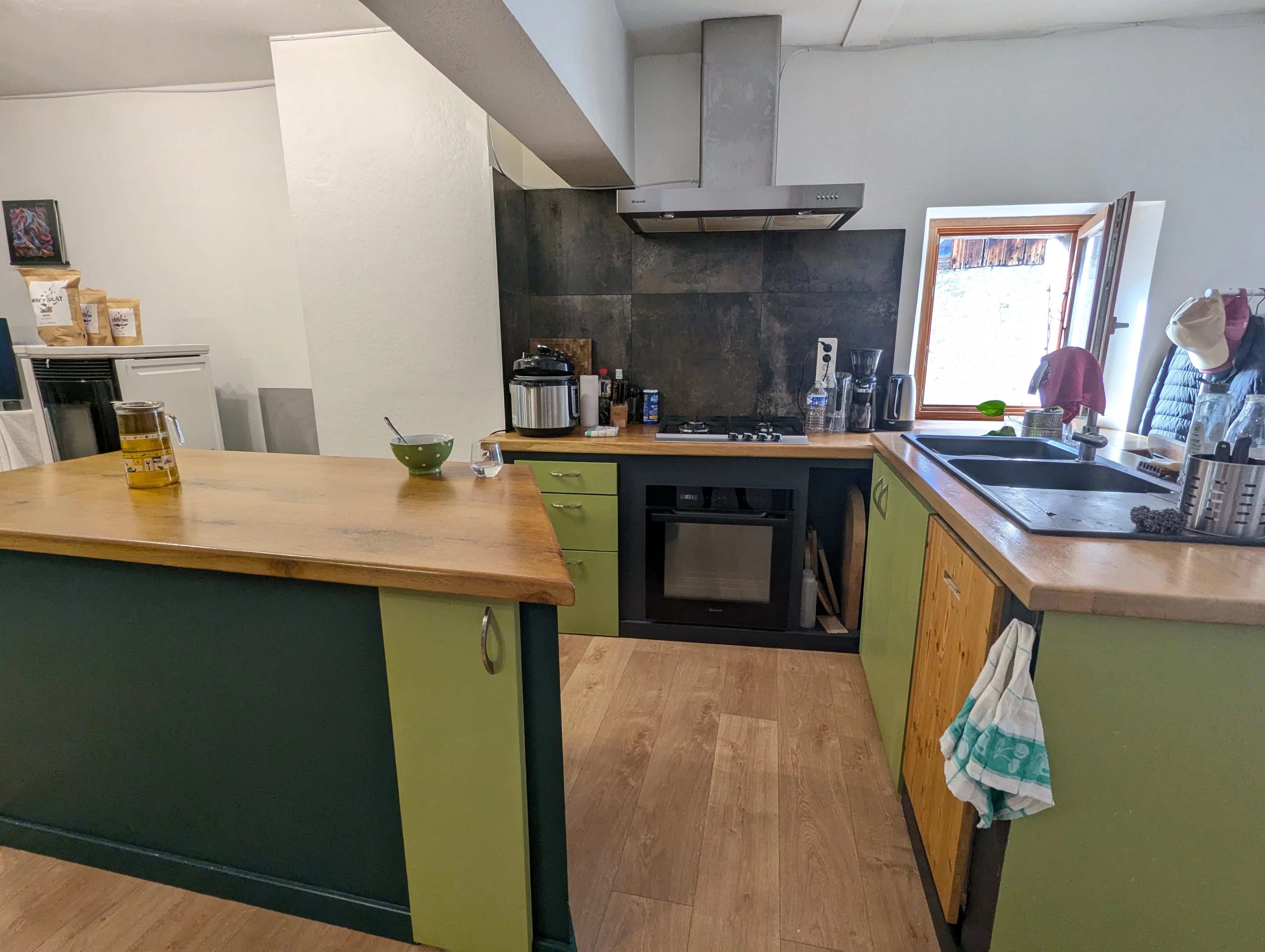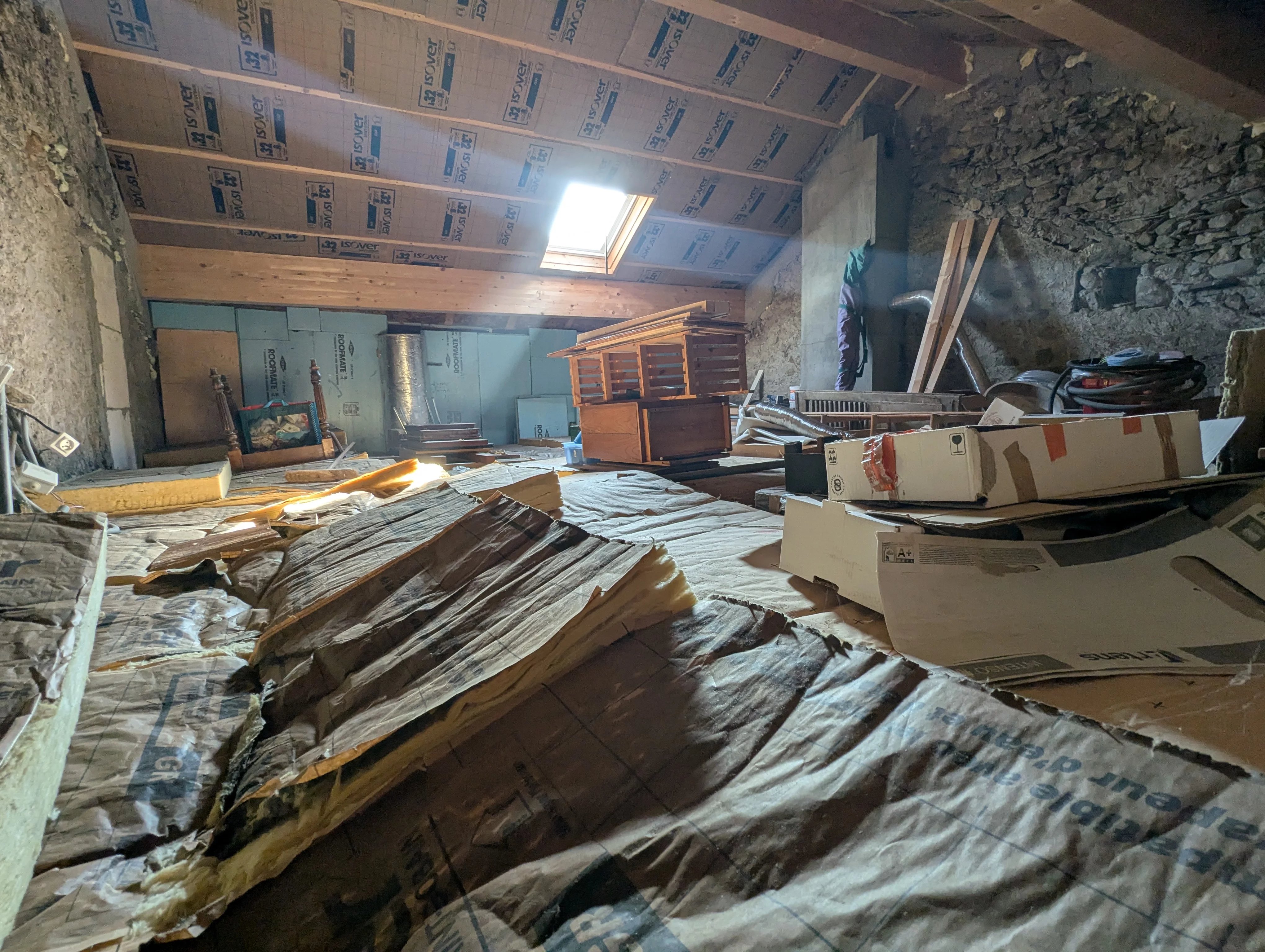 Ce loft propose une entrée spacieuse, une pièce de vie ouverte avec cuisine toute équipée et son ilôt, un poêle à granule, un espace nuit, une salle de bain et un WC séparé. Au dessus de l'appartement des combles de 36m2 restent à valoriser avec un potentiel de deux grandes chambres supplémentaires, l'emplacement pour 2 velux est prévu.