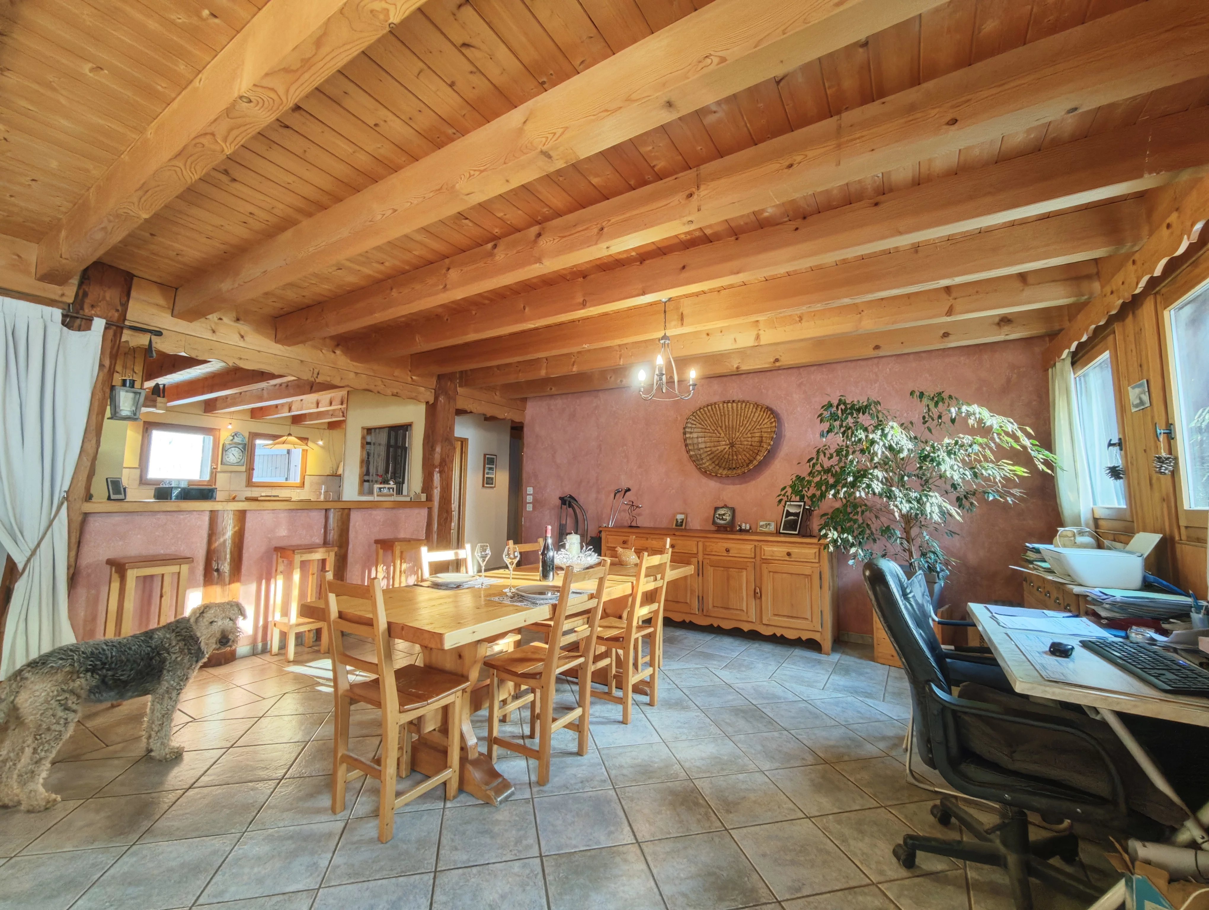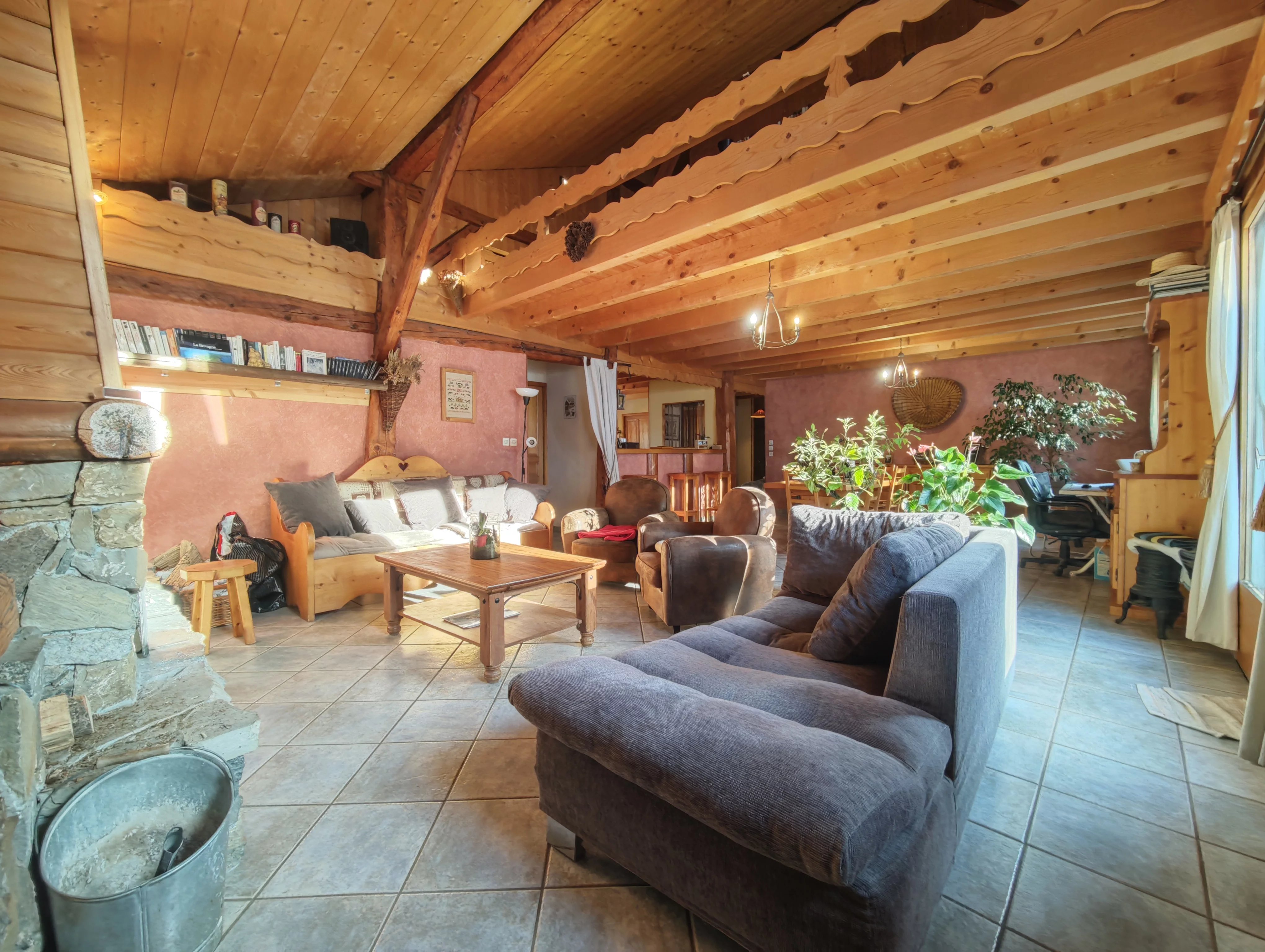 Face Est, on retrouve le gîte avec à l'entrée sa courtine sublimée par des pierres de taille. Ce gîte propose actuellement une grande cuisine, un salon avec cheminée et salle à manger, 3 chambres et une grande salle de bain. Côté Sud, le haut de la bâtisse dispose de deux étages et d'une grande terrasse. On y trouve une pièce de vie de 50m2 équipée d’une cheminée dans la partie salon et d'un bel espace salle à manger, une cuisine toute équipée avec cellier attenant, une grande chambre double avec balcon, une salle de bain et douche, ainsi que de nombreux espaces de stockage comme un vestiaire et une pièce technique avec la chaufferie (chaudière fuel de moins de 10 ans) et buanderie. A l’étage, 4 chambres avec une mezzanine ouverte, une salle d’eau avec un sauna. Cette bâtisse de caractère a la particularité d'être est localisée sur la piste Doina du GRAND MASSIF équipée de canons et ouverte selon l’enneigement. Elle dispose également d'un parking extérieur, d'un carport et d'un local technique pour stocker skis et vélos. Charges annuelles fioul + électricité en résidence principale 4330€. Une opportunité rare dans un cadre d'exception à découvrir sans hésiter !